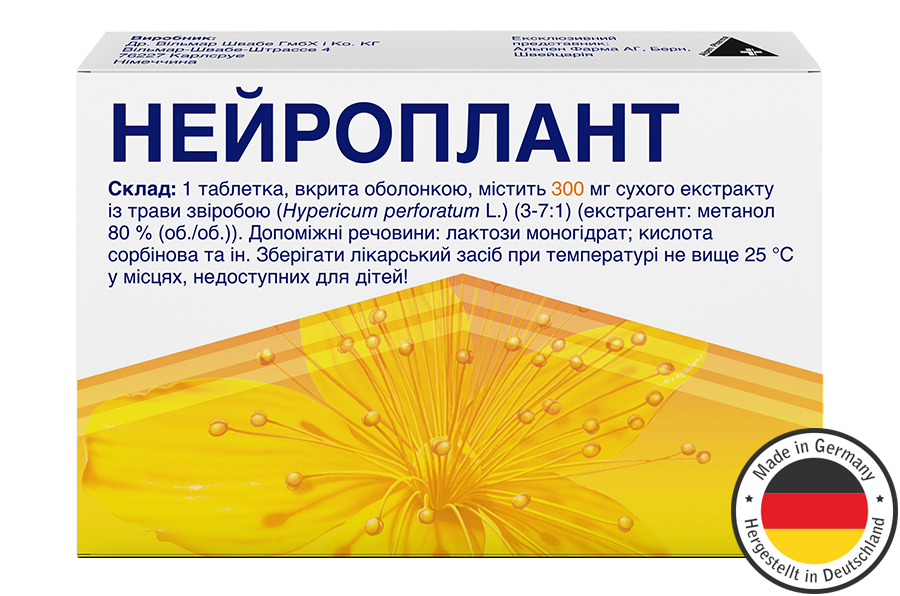 Нейроплант Р.П. МОЗ України UA/0414/01/01 від 13.02.2014. Реклама лікарського засобу. Перед застосуванням уважно ознайомтесь з інструкцією для медичного застосування та проконсультуйтесь у лікаря.Зберігати у недоступному місці для дітей. Має протипоказання та побічні реакції. Виробник: Dr. Willmar Schwabe GmbH & Co. KG (Німеччина) Офіційний ексклюзивний дистрибютор в Україні: ПрАТ «Натурфарм» Copyright © 2019 Нейроплант®